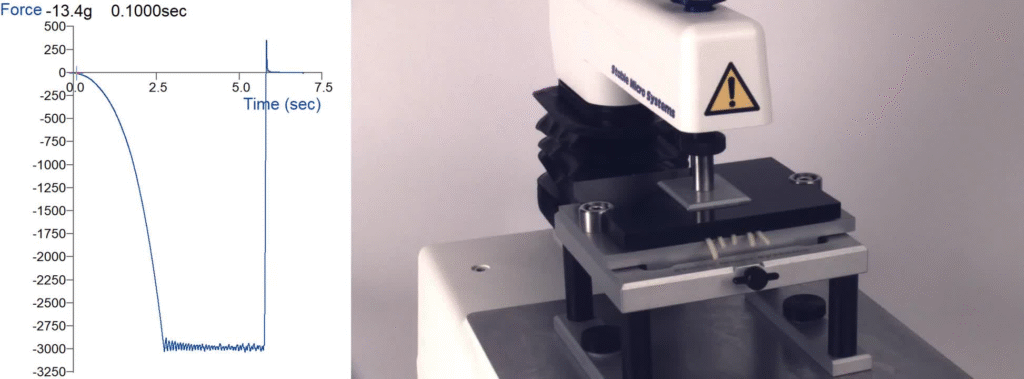 • Test fikri: Tekstür Profili Analizi (TPA) testi mochi için idealdir. Büyük silindirik bir prob, mochi topu üzerinde iki sıkıştırma gerçekleştirecektir. Bu iki ısırık testinden elde edilen kuvvet-zaman grafiği doğrudan yaylanabilirlik, yapışkanlık, çiğnenebilirlik ve esneklik değerlerini verir ve kapsamlı bir tekstürel parmak izi sağlar.