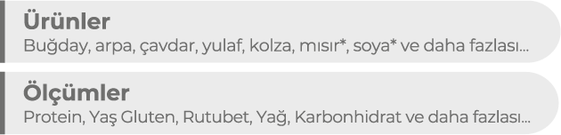 Yalnızca altı kalem pil ile çalışır. 3 gr numune ile sadece 5 saniye içinde Protein, Rutubet, Yaş Gluten, Yağ, Karbonhidrat ve Nitrojen ölçüm sonuçlarını TMO ve borsa laboratuvarları paralel vermektedir. Cep telefonu uygulamasına ve bilgisayar ekranına tüm ölçümler uydu konumları ve notları ile anlık aktarılır, çıktı alınabilir. Kalibrasyon, yazılım güncellemeleri ve diğer ayarlar internet aracılığıyla anlık olarak aktarılır. Bir kilonun altındaki bu cihazın taşıma çantası mevcuttur.